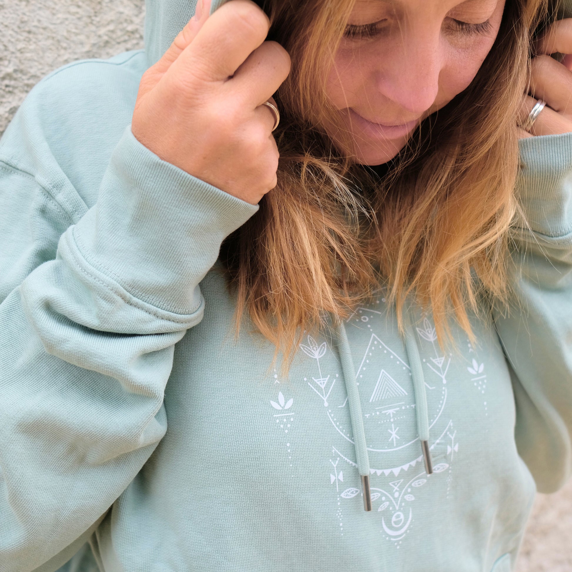 A volte è la piccola cosa a rivelare profondità. La nostra felpa unisex Dimensional unisce design minimalista ed espressione artistica. Il motivo Dotwork dipinto a mano sulla tasca del petto proviene dalla nostra amica e artista di lunga data Emily (@ink.and.earth). Il suo stile è ispirato da forme naturali, geometria fine e simbolismo silenzioso.
