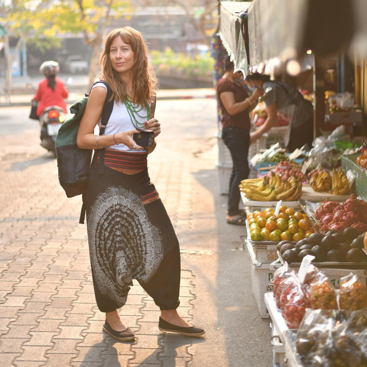 Pantaloni di Aladino con grande mandala Pantaloni alla turca con cavallo a goccia per l'uomo...